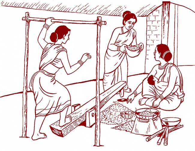 (નિર્લિપ્ત ગૃહસ્થ – ઠાકુરની જન્મભૂમિમાં ધાન્ય કૂટનારી છોકરીઓના કામને જોવું)